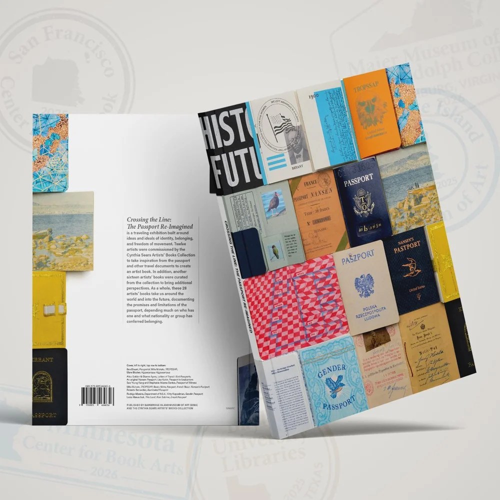 The series of artists’ books in the exhibition reflects on themes of immigration, power, limitation, and belonging through creative depictions of what the passport reimagined looks like to each artist. These artists were commissioned by the Cynthia Sears Artists’ Books Collection and are touring through 2025 and 2026 from the Bainbridge Island Museum of Art. Other exhibition spaces include: San Francisco Center for the Book, Minnesota Center for the Book, Maier Museum of Art.